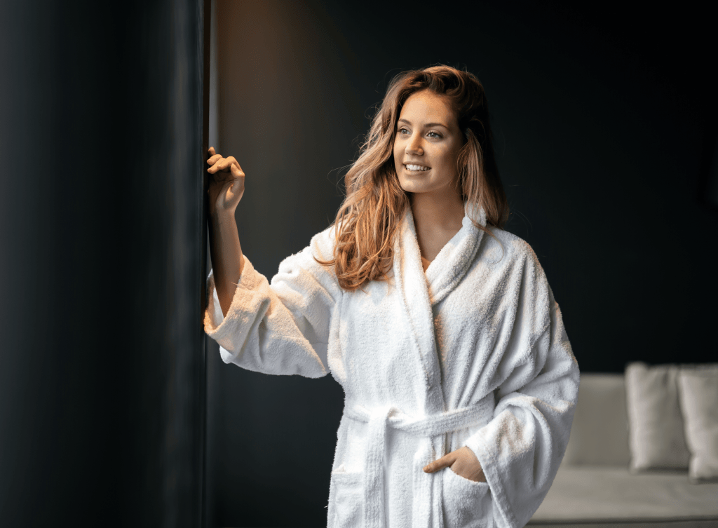 Elevate your daily rituals with our luxuriously soft towels and bathrobes.